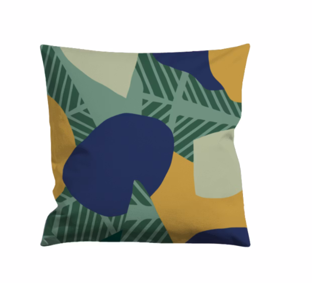 Pigga upp med färg hemma! Kuddfodral 50 x 50 cm. Tryckt med motivet Blad på ekologisk bomull.