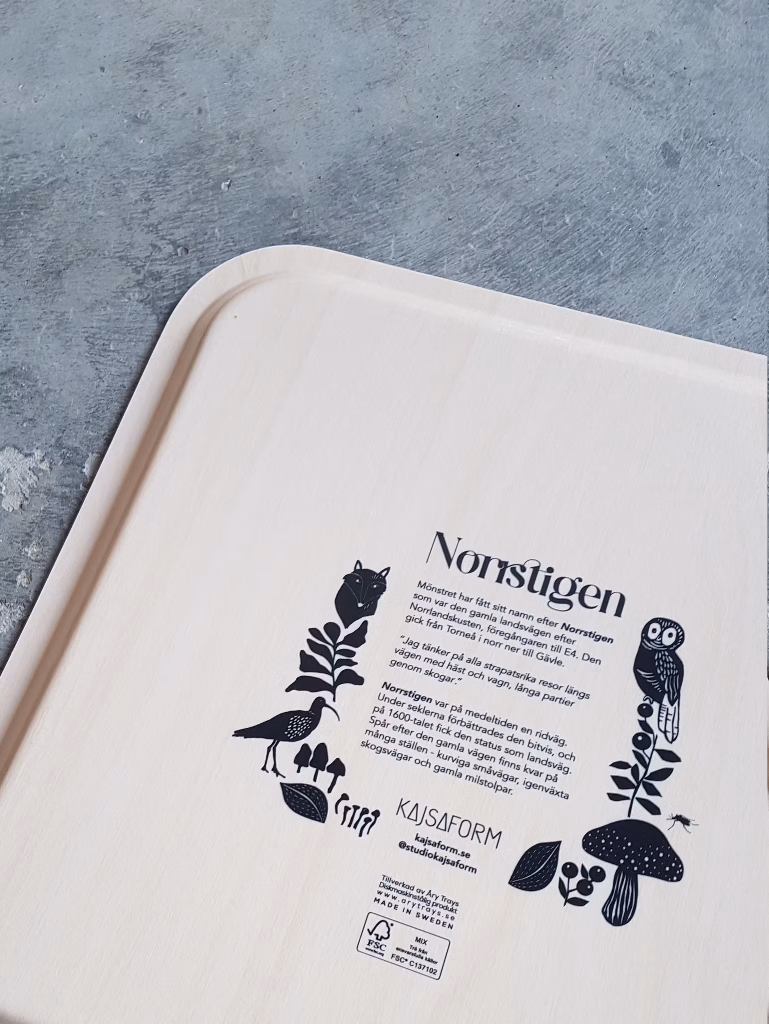 Tillverkad i Sverige av formpressad björk, tål maskindisk.
