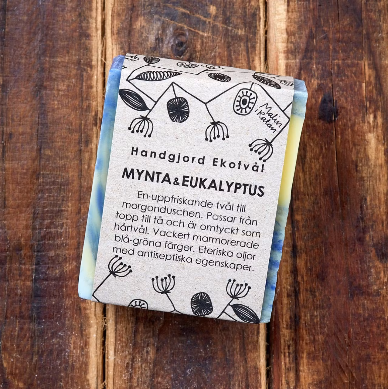 Tillverkad med certifierad ekologisk/naturlig förtvålad svensk kallpressad Rapsolja, Kokosfett, Olivolja, Kakaosmör och Ricinolja. Eterisk olja eukalyptus & pepparmynta. Nässelpulver och naturligt mineraliskt pigment.