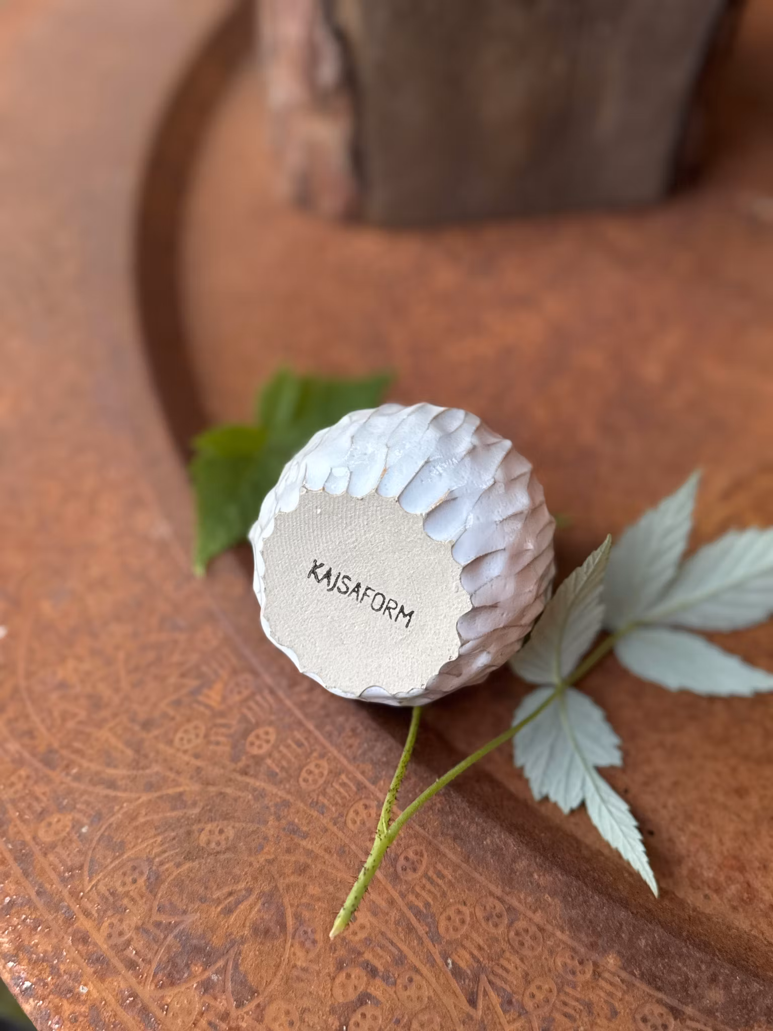 Vas som är drejad i stengods med karvat mönster och glaserad i vitt. Mått ca 9 cm hög och 6 cm bred. Design Kajsa Nilsson.