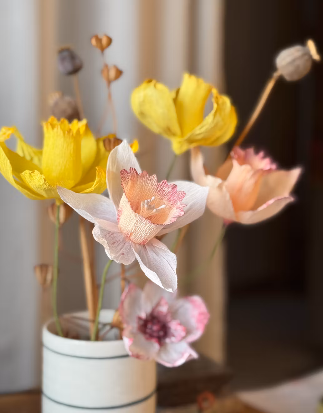 Handtillverkade påskliljor, 4 st. Fina tillsammans eller ställ i olika vaser.