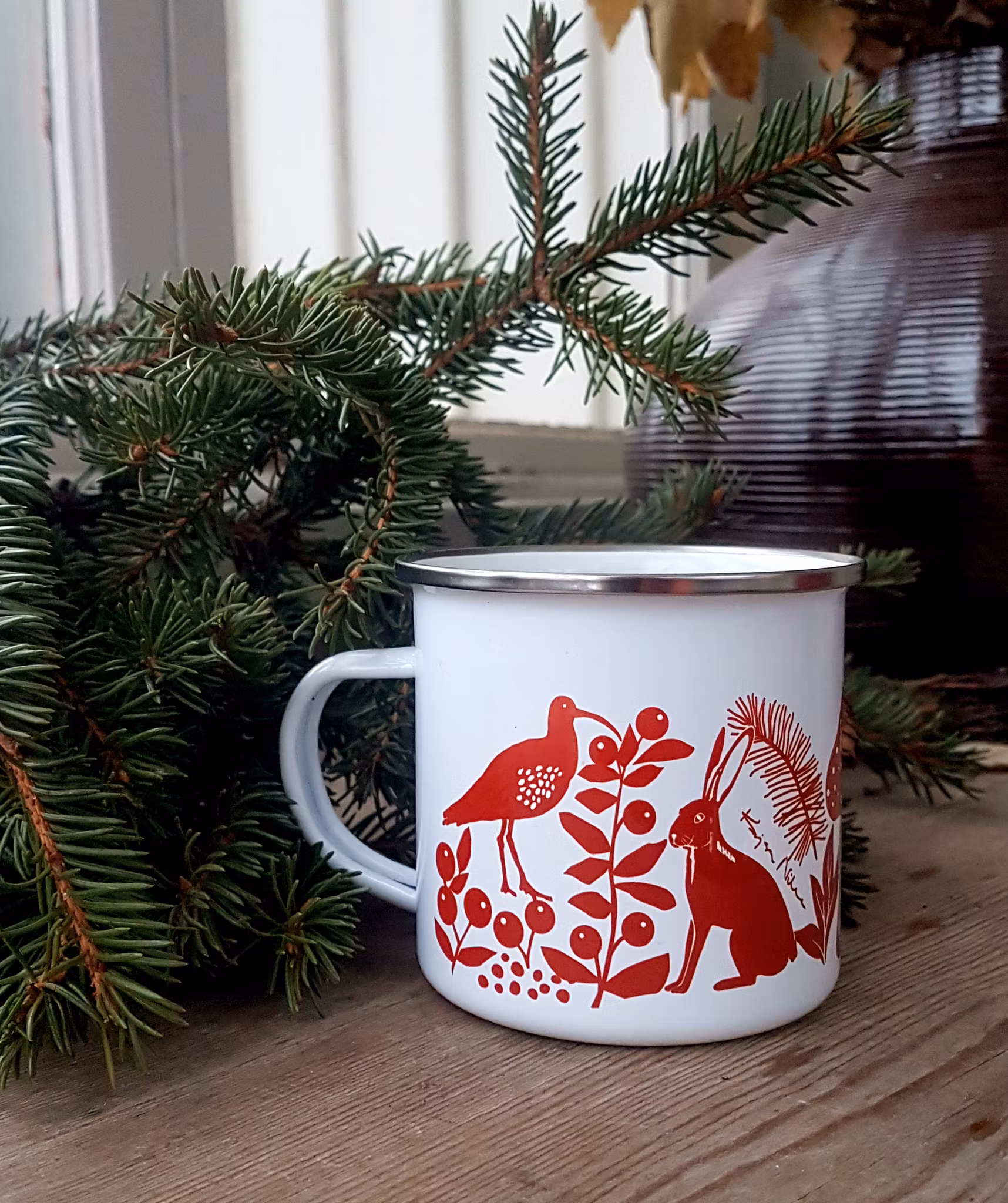 Koppen är lätt och tålig att ta med sig på utflykten. Muggen har silvrig kant som är drickvänlig.