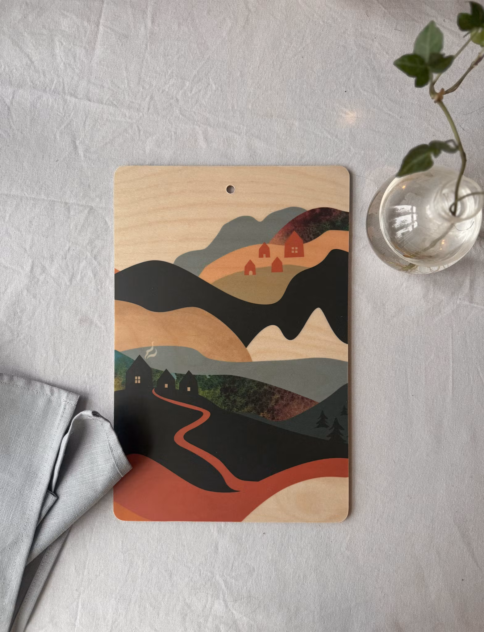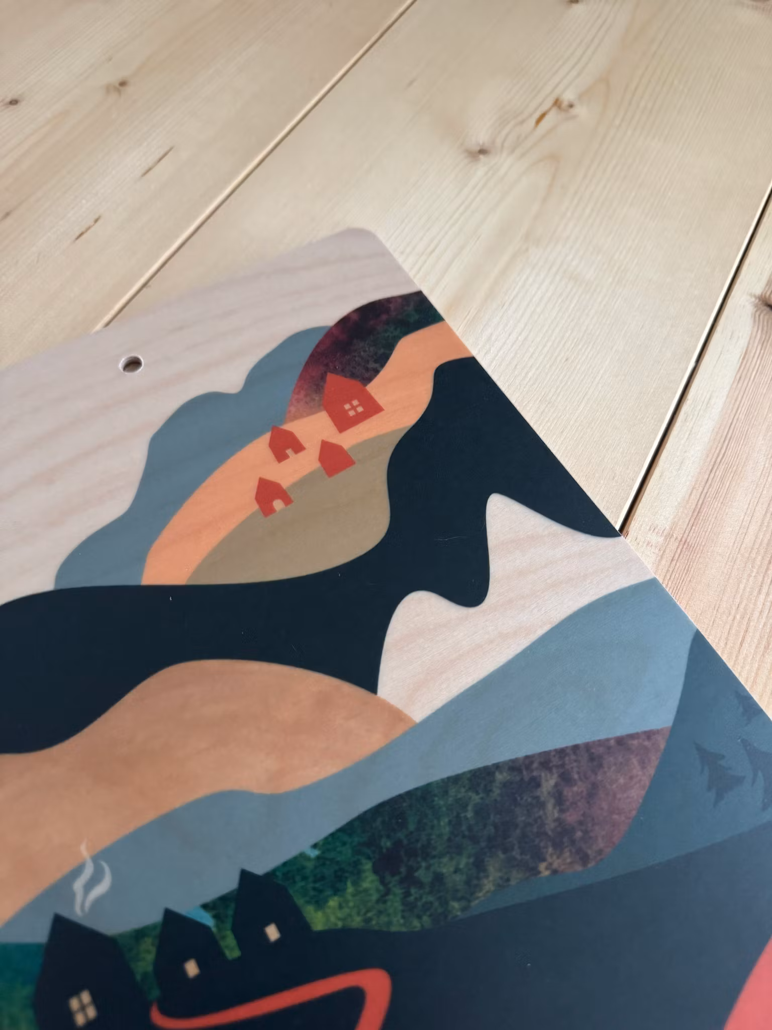 Motivet är tryckt på formpressad björk, där björken syns igenom som bakgrund. Tillverkad i Sverige och tål maskindisk.