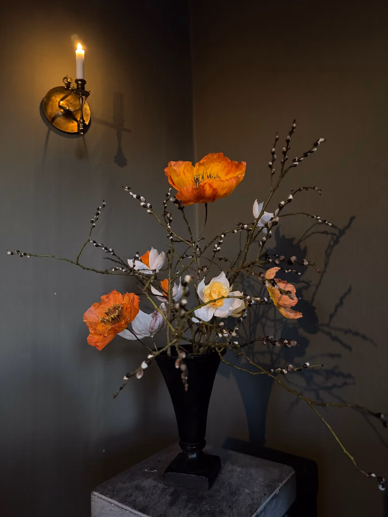 En vas/urna som är vacker att göra blomsterarrangemang i. Vasen står stadigt, även utomhus i friska vindar.